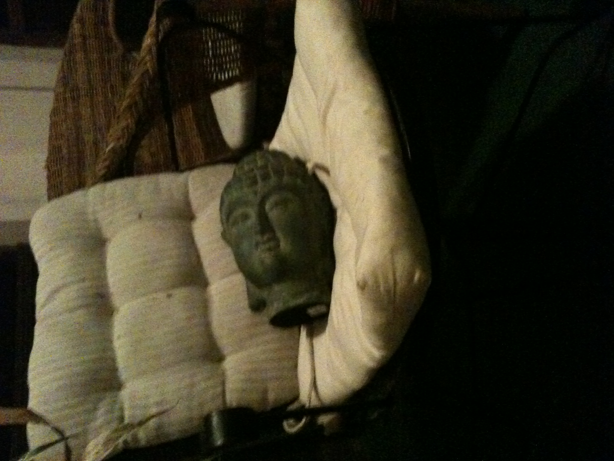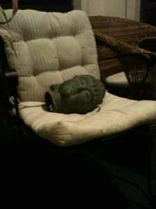 Buddha lays sideways on chair